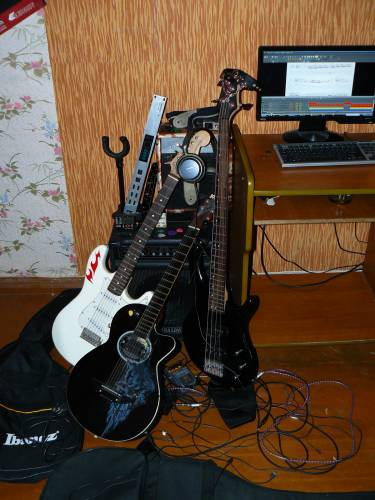 чехол Ibanez, маленькая педалька, страт и маленький комбик - не мои... остальное - моя скудненькая коллекция:)